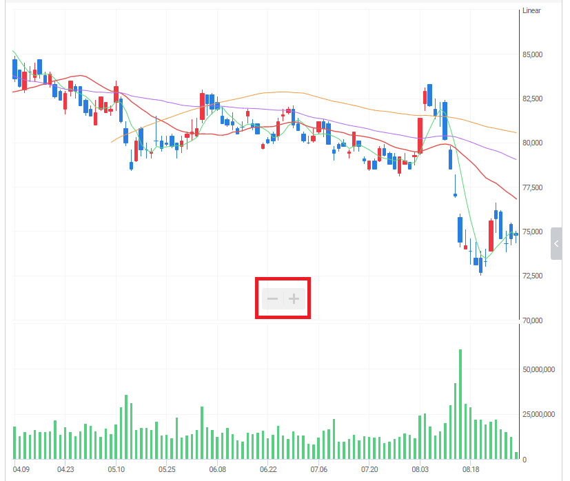 특히 아래의 차트 내용 중 빨간 네모 안에 있는 줌 인/아웃 버튼 그림을 넣어보고자 한다.